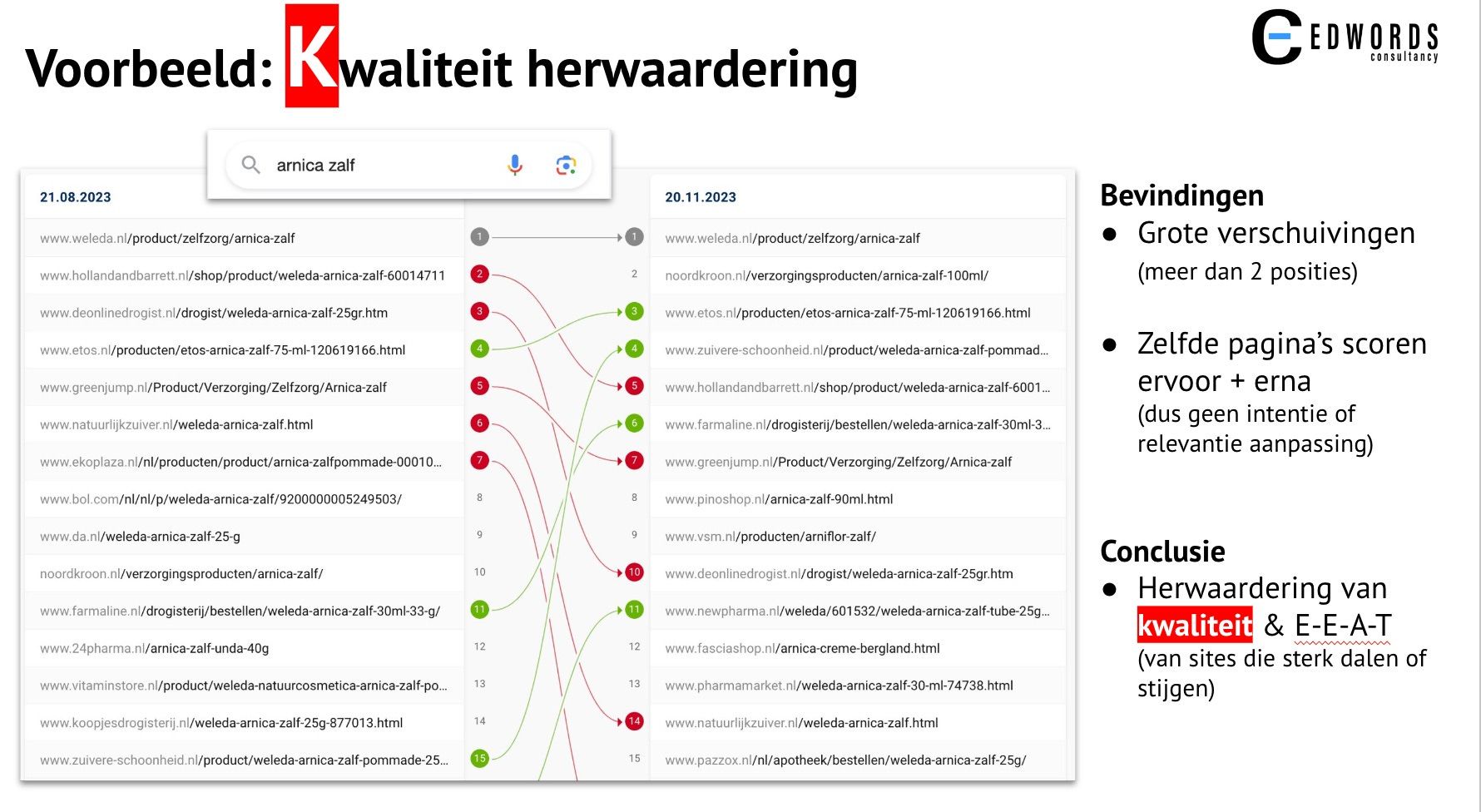 Dit leidt vaak tot grote verschuivingen in de zoekresultaten en kan dus veel invloed hebben op je rankings en zichtbaarheid.