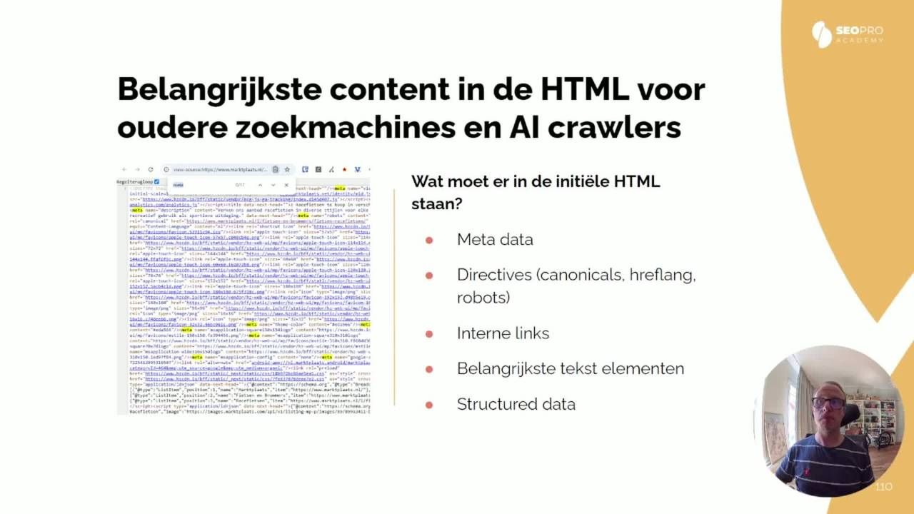 In deze masterclass leer je hoe JavaScript invloed heeft op crawl, renderen en indexatie, hoe je problemen snel opspoort en oplost, en hoe je sites SEO-proof maakt.